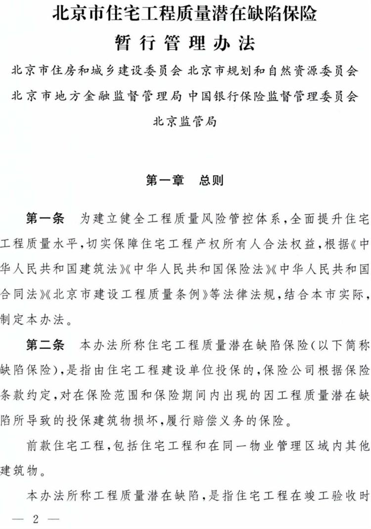 《北京市住宅工程質(zhì)量潛在缺陷保險(xiǎn)暫行管理辦法》