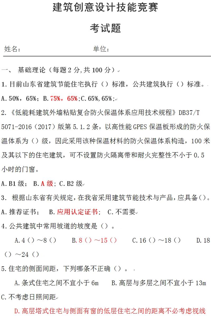 基礎(chǔ)理論:建筑創(chuàng)意設(shè)計技能競賽考試題(圖1)